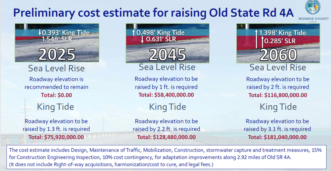 Last month, the Keys asked the state for $150 million to address sea level rise. Newly released cost estimates show the county could blow that entire amount on a few miles of road elevation.