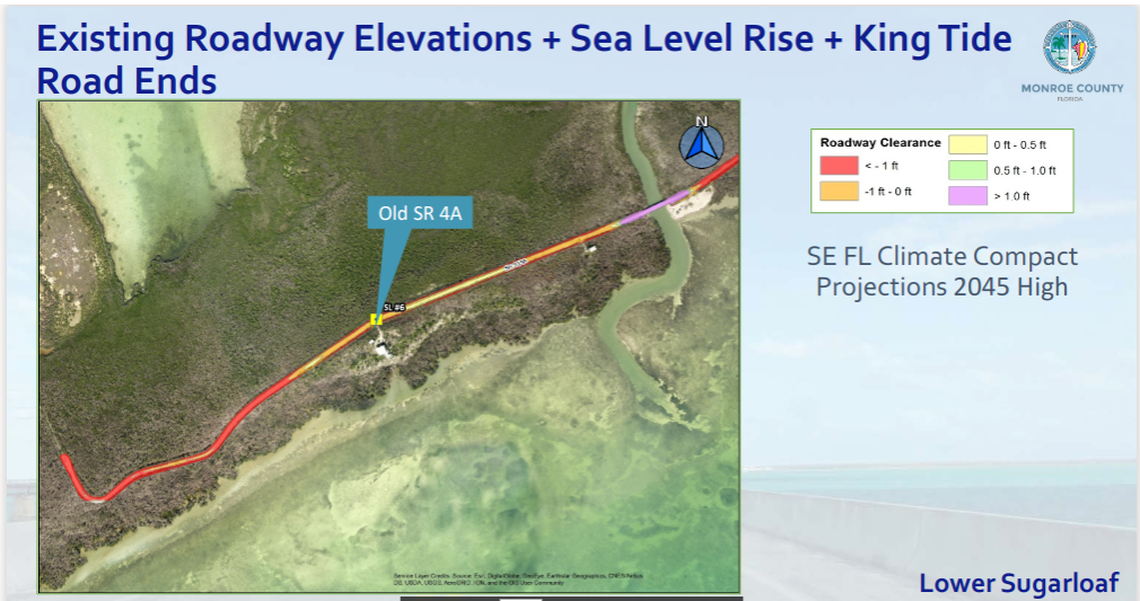 Elevating less than three miles of Old State Road 4A on Sugarloaf Key to withstand sea rise and king tide by 2025 could cost $75 million, Monroe’s head of resilience revealed at a sea level rise conference in Key West on Wednesday. Elevating for 2045 could cost $128 million. And by 2060, that price tag could soar to $181 million.