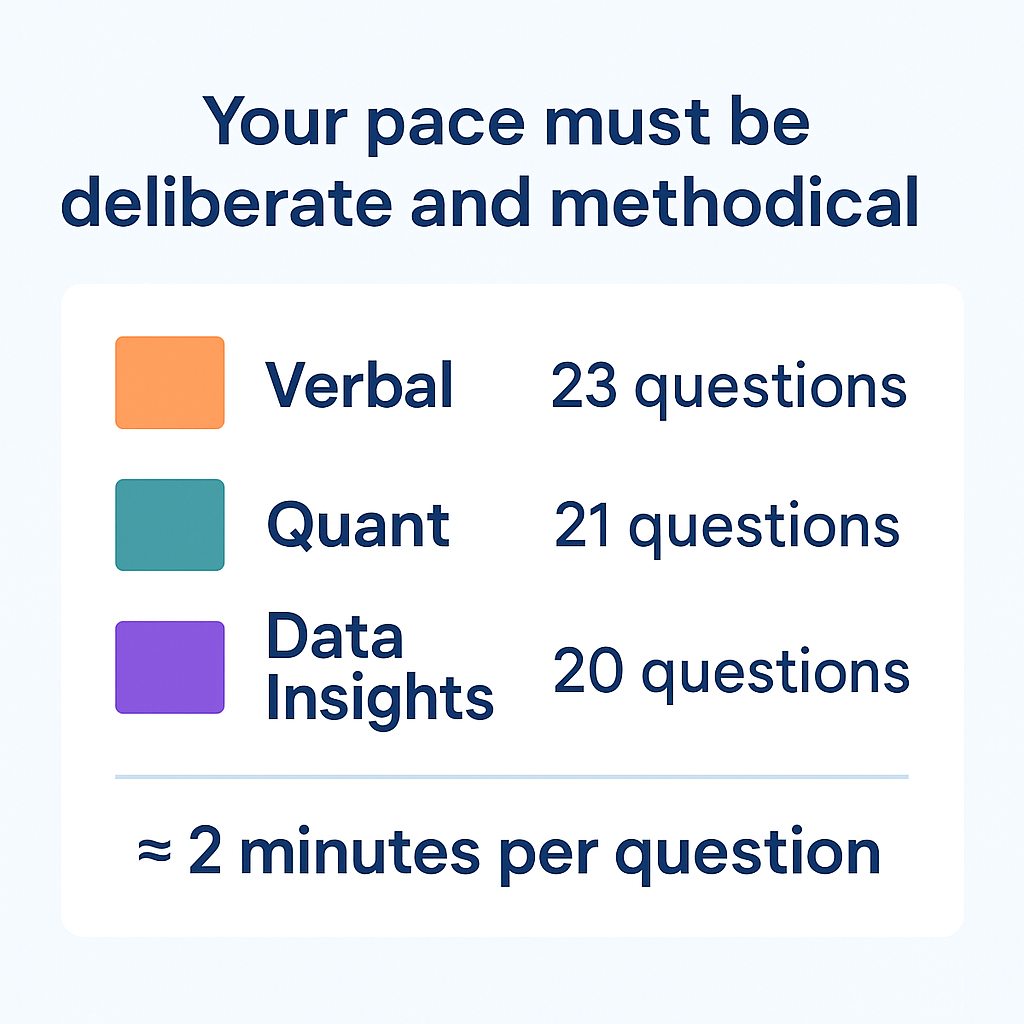 Practicing this way builds comfort with the test’s pace, improves time awareness, and strengthens accuracy on question types like data sufficiency and critical reasoning.
