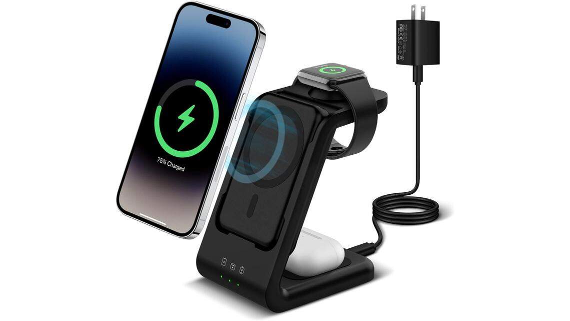 For a charger that doesn’t get unwieldy with extra cords, our pick is the Smtscl, a sleek, simple charger that can simultaneously charge iPhones and other QI-enabled phones, AirPods and Watches. You can detach the magnetic pack from the base for convenient wireless phone charging on the go, and at 27% off, now’s the time to add it to your cart.