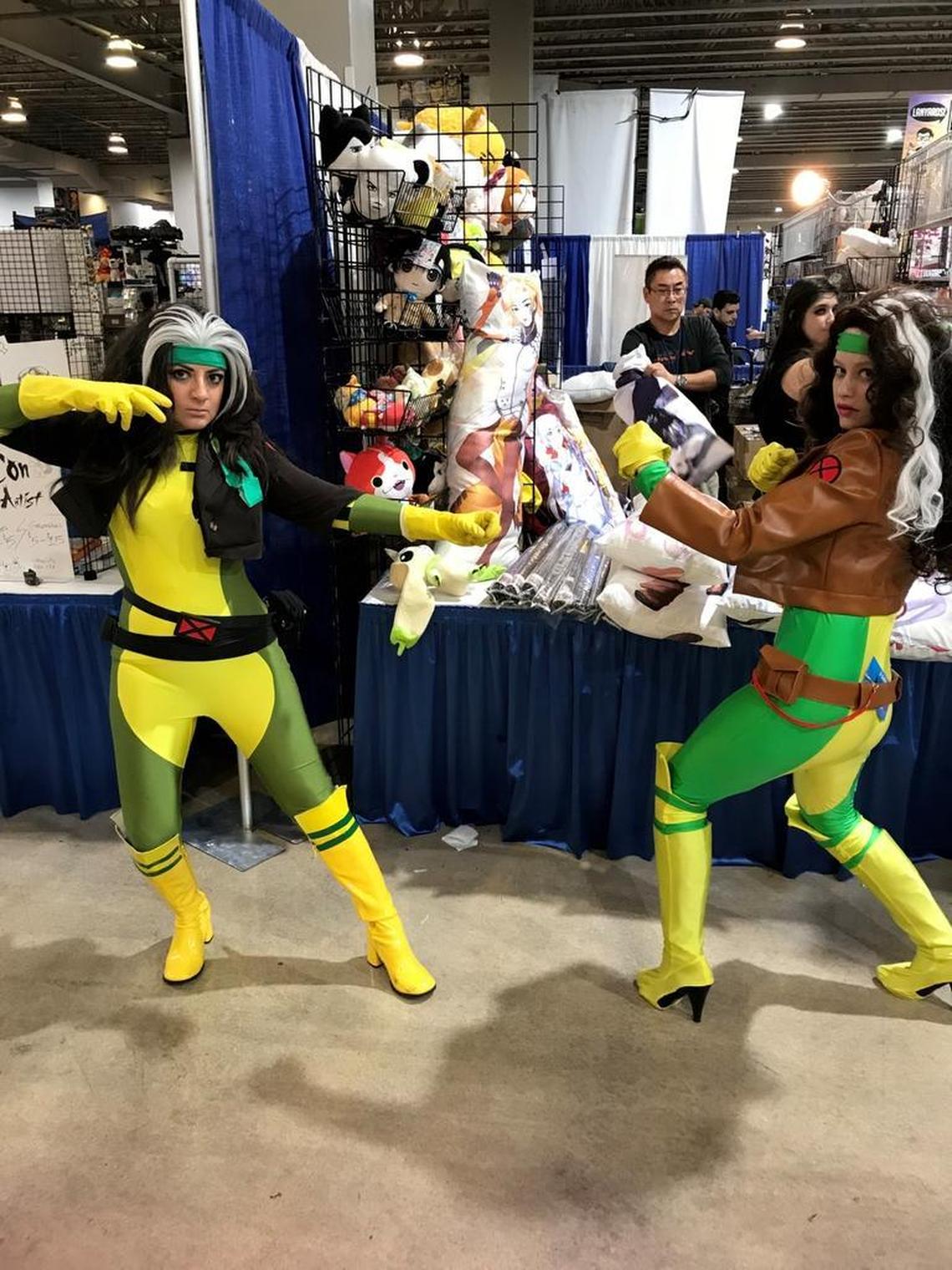 They almost didn’t on Sunday, the last day of the three-day event. The not-quite-trouble started as 28-year-old Mishelle Barrios of West Palm Beach flounced through the convention center in her slinky green-and-yellow Spandex costume as Rogue, that super-power-stealing vixen from the X-men comic books. (Of course it was the 1995 comic book costume, you idiot! Only common trash would wear the steam-punk 2000 TV show outfit!)