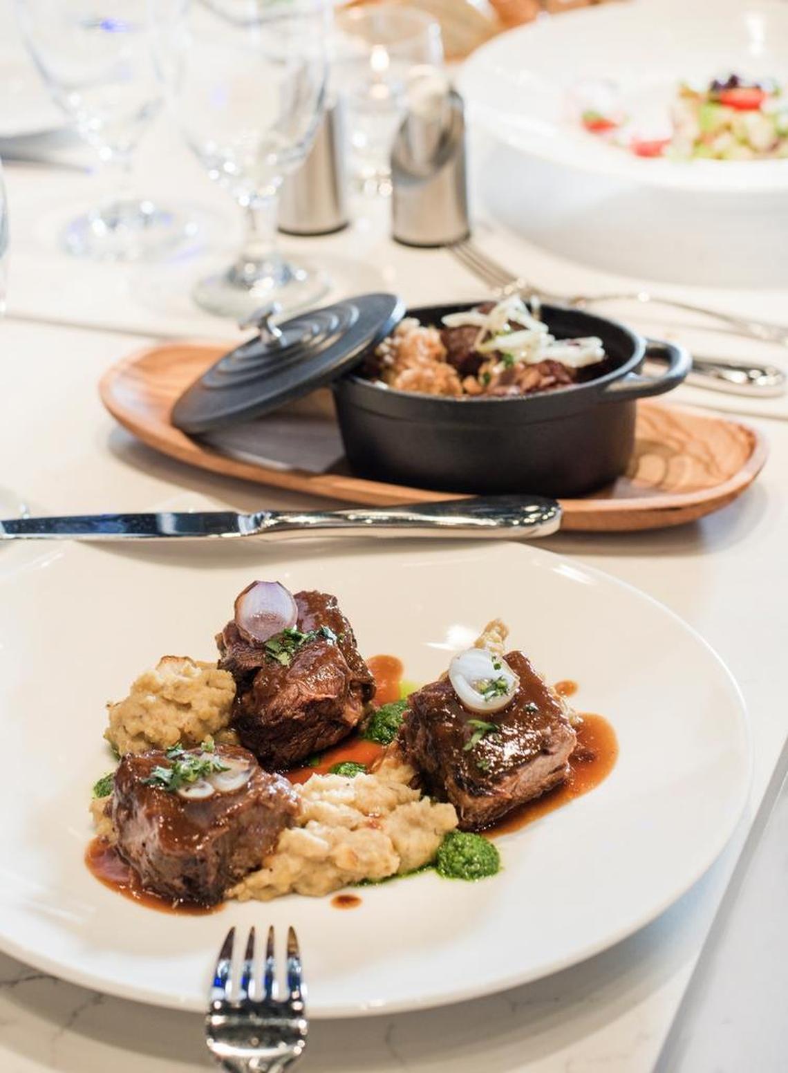Wagyu returns with the braised short ribs, and they’re another hit. Simmered three hours in the oven with both red and white wine plus carrot, onion, celery, thyme, rosemary and oregano in a brown-sugar Creole sauce, they’re insanely tender, and the wagyu amps up the beefy flavor.