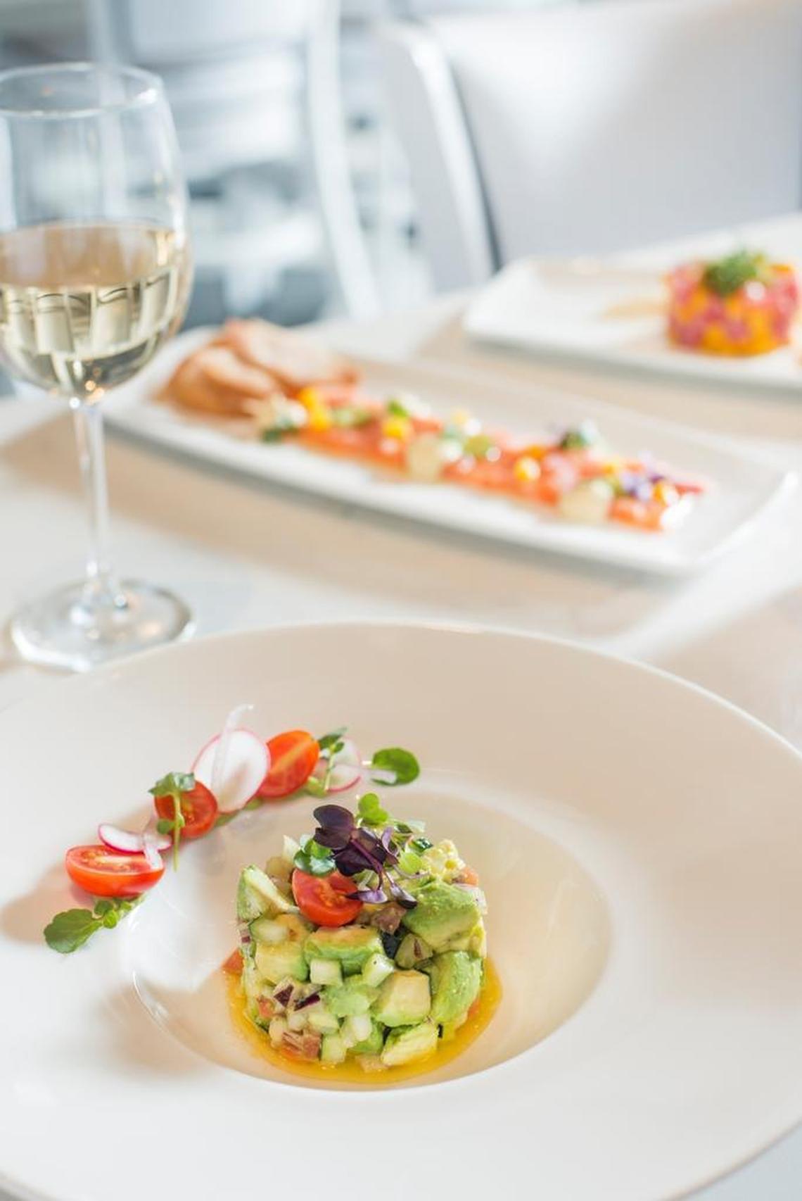 Avocado salad is a fresh-tasting foil to the rich bisque. Diced avocado is mixed with red onion, cucumber, tomato, white balsamic vinegar, cilantro and olive oil in a ring mold. The crunchy vegetables add textural variety to the buttery avocado, and the dressing is consistently applied and excellent.