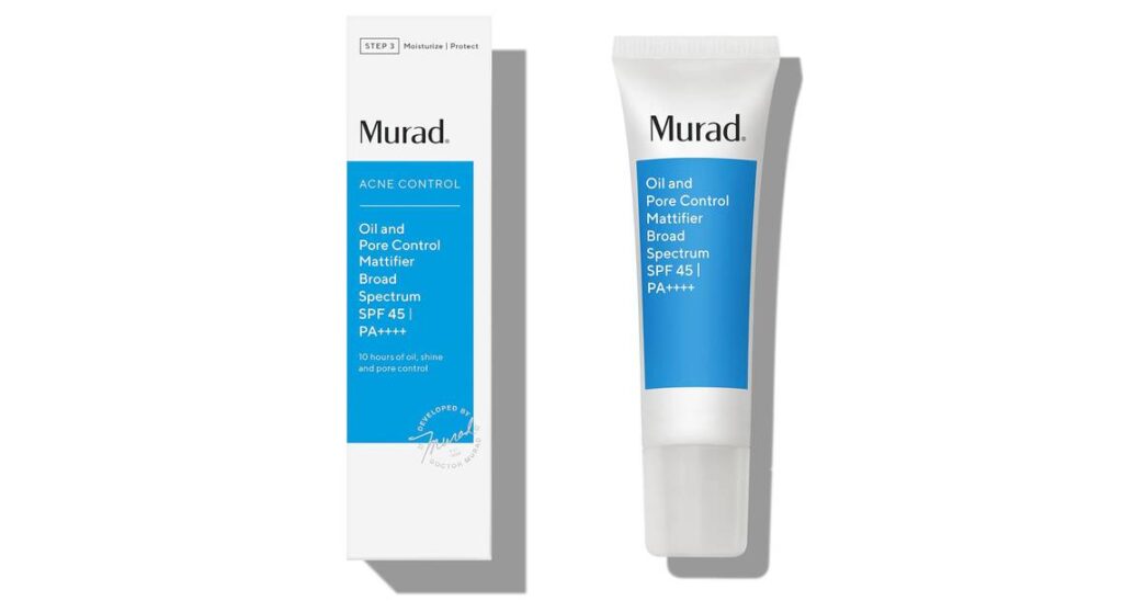 With an SPF of 45, this pore-reducing facial moisturizer protects your skin from the sun to prevent drying and damage that could make acne more likely to appear. It’s effective for ten hours, controlling oil production, shine, and pores while also smoothing the appearance of the skin and blurring out imperfections.
