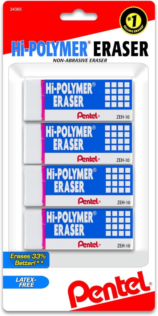 These latex-free erasers from Pentel make erasing mistakes much easier. They come in a pack of four and do a great job of getting rid of even the darkest pencil marks, with no smudges or residue left behind.