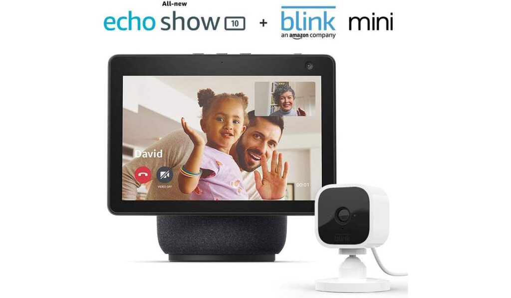 Best for Premium Indoor Security: Echo Show 10 (3rd Gen) | Charcoal with Blink Mini Indoor Smart Security Camera