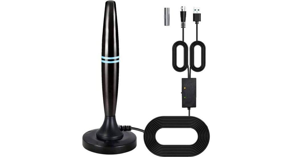 As it’s amped, it has a decent range, scanning for channels and signal receivers up to 250 miles away. An 18-foot coaxial cable and USB power adapter make it easy to place it anywhere and still get the best TV reception, even if your TV is away from the window.
