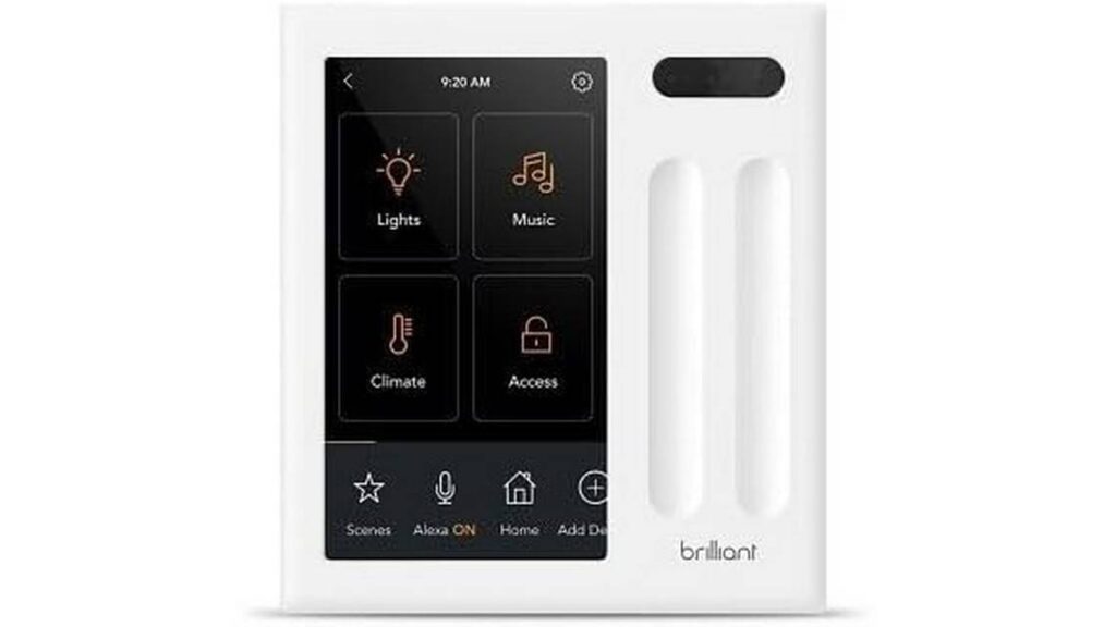 The Brilliant Smart Home Control is a sleek hub designed to centralize your home automation. Replacing a standard two-gang light switch panel, it boasts a five-inch LCD touchscreen and voice control, streamlining the management of devices like lights, cameras, and smart locks.