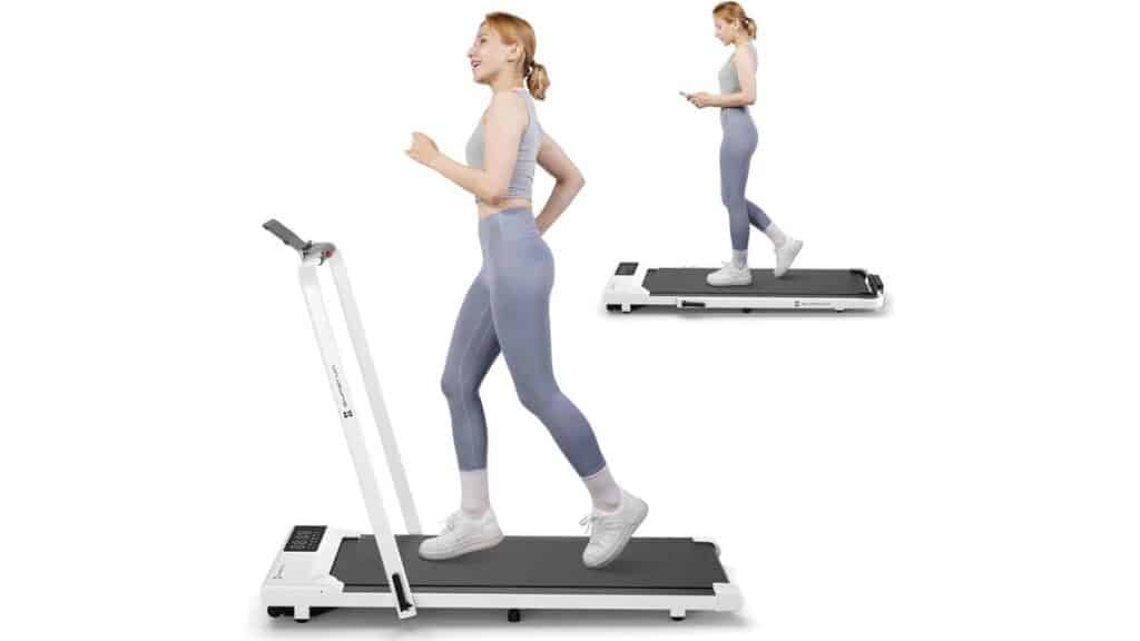 However, the DAEYEGIM does have its drawbacks. The price might give your wallet a pause, and while it’s quieter than your average treadmill, it’s not 100% silent — a consideration for shared workspaces. Also, its top speed of 5 MPH might disappoint the high-intensity runner, catering more to the leisurely-paced user.