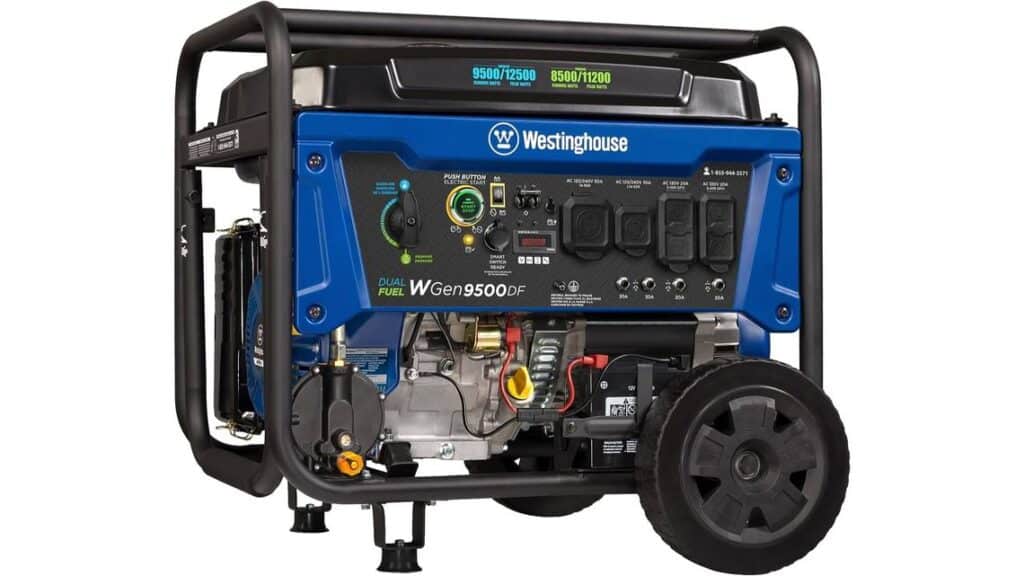 The first best generator on our list is the powerhouse Westinghouse 12500W. It packs reliable power and adaptability into a single unit. Plus, it can comfortably run your essentials for hours during a blackout, and the dual-fuel option lets you seamlessly switch to propane if your gas tank runs low.