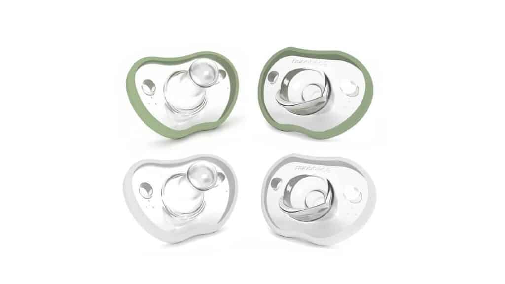 Constructed from 100% medical-grade silicone, these pacifiers are not only safe but also gentle on the baby’s gums. Their BPA-free nature and the convenience of being dishwasher-safe make them a top choice for many. Moreover, being manufactured in the USA adds another layer of trust.