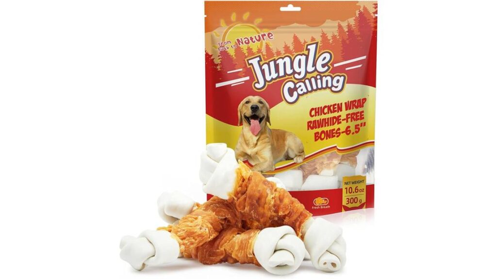 Best for Medium and Large Dogs With a Taste for Chicken: Jungle Calling Rawhide Free Dog Bones