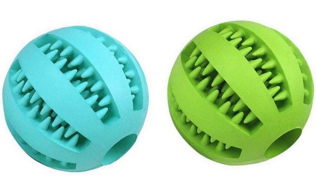 Other pet parents prefer a different dog-chewing toy for their puppies because the small teeth in the balls can break off over time.