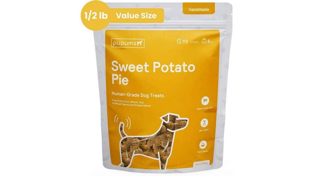 Pupums Sweet Potato Pie Dog Treats excel with their top-quality, human-grade ingredients, making them ideal for dogs with food sensitivities. Their organic, non-GMO nature ensures they’re free from harmful additives and preservatives.