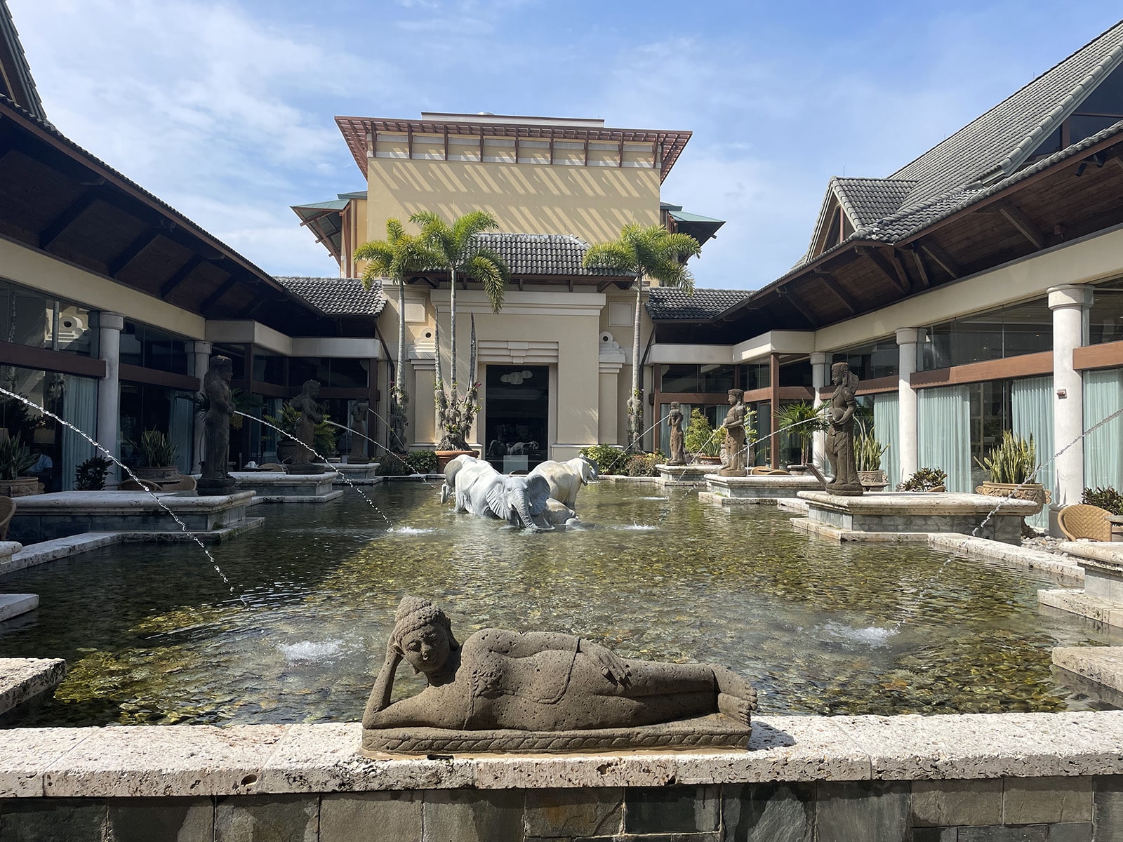 I’m an adventurer at heart, so I had a lot of fun exploring the hotel grounds, snapping photos in front of the elephant statue fountain, checking out all of the shops at the hotel and walking along the gorgeous pathway full of palm trees, flowers and views of the water.