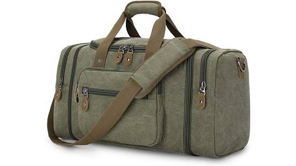 This duffel bag is durable thanks to a high-density cotton canvas that gives the classic look of an army duffel bag, and since it is made of fabric it is also light and stylish. This bag is perfect for carry-on luggage since it will fit in the overhead compartment, and it has both a shoulder strap and dual handles on top.
