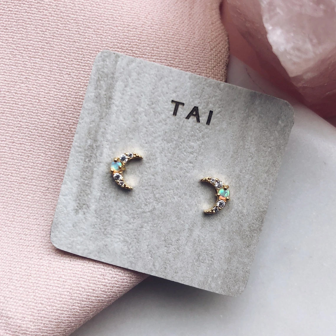 Local Eclectic Mini Opal Moon Stud Earrings, $60