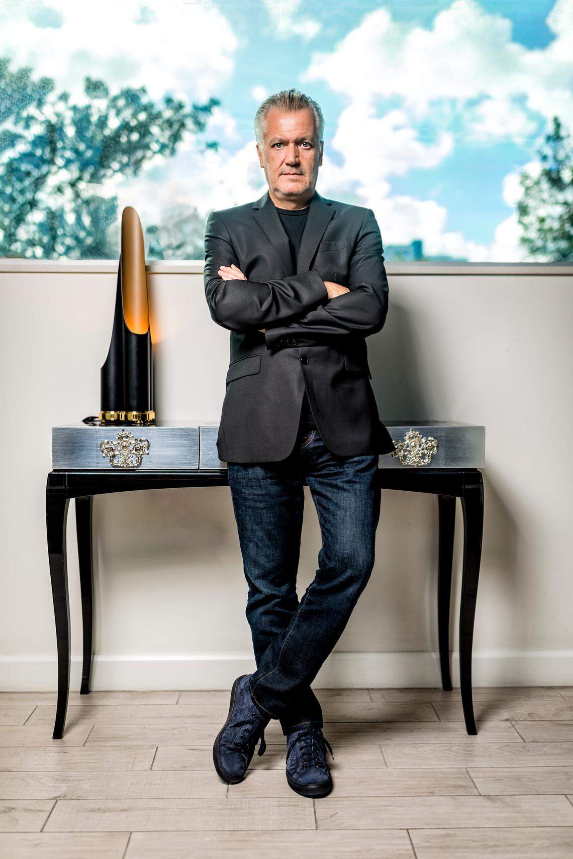 This French Alps-born guru was educated in Switzerland and Paris, where he studied design, engineering and dabbled in architecture. In the late 1980s, Frossard moved to Chicago, where he developed close relationships in the design world. Fourteen years later, he was working at an agency that designed conceptual mega- clubs like Crobar in the MidWest. “When I worked on the project in Chicago,” Frossard explains, “they saw my skill. This all spiraled into meeting the who’s who of nightlife in Miami.”