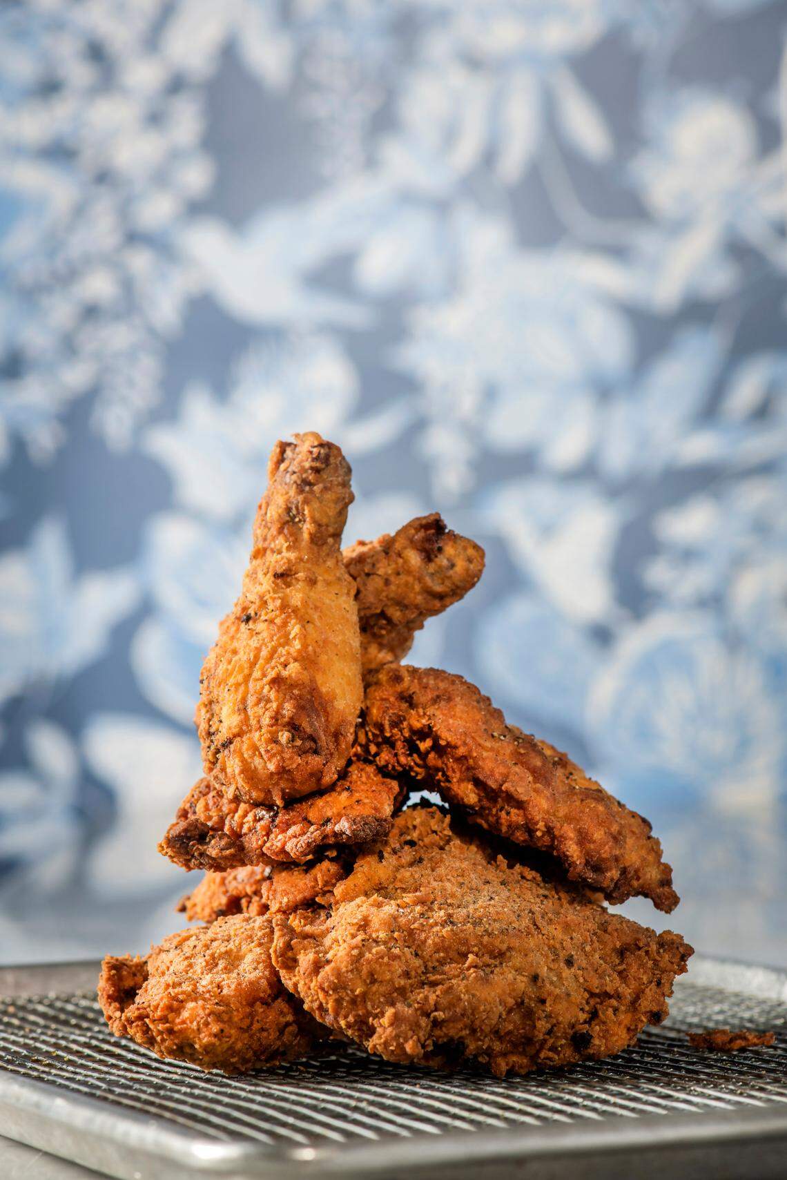 If you attempt the recipe on these pages, Flit suggests either asking a butcher to cut up a whole chicken or do it yourself, avoiding the “hacked up” pieces in grocery stores. It’ll also take some time — at least three days of prep. Aside from that planning, it’s not a difficult recipe, Flit says, and it does include two secret weapons in the breading: potato starch for crunch and milk powder to keep the chicken moist.