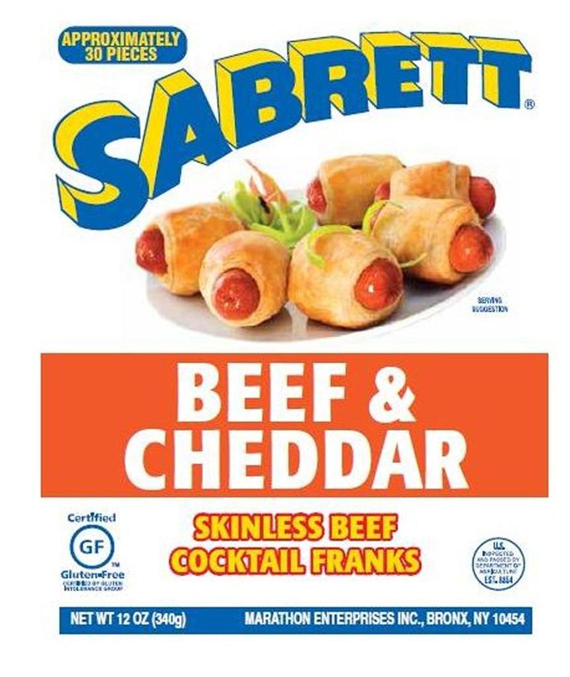 ▪ 12-ounce packs of Sabrett Beef & Chedder Skinless Beef Cocktail Franks, UPC code 773.