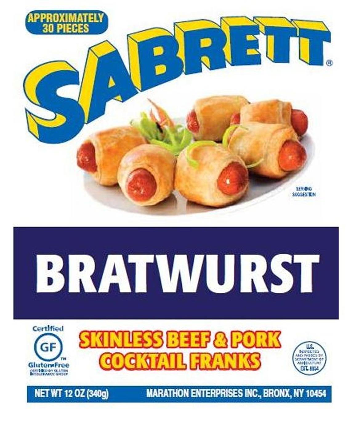▪ 12-ounce packs of Sabrett Bratwurst Skinless Beef & Pork Cocktail Franks, UPC code 772.