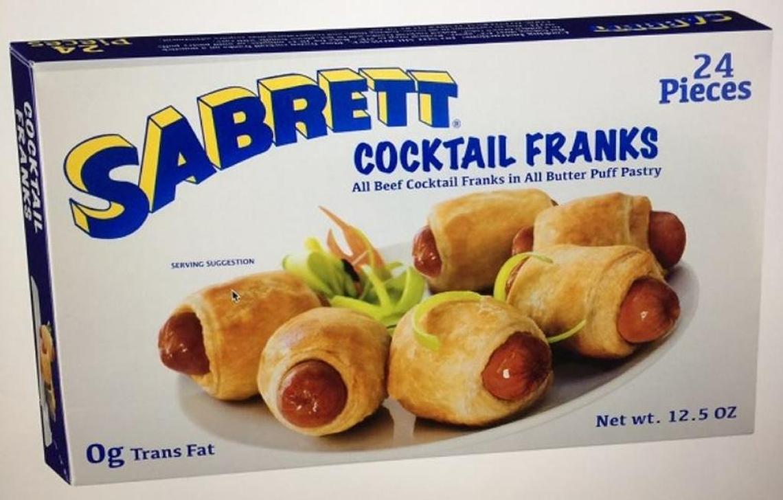 ▪ 1-pound, 9-ounce and 12.5-oz. packages of Sabrett Cocktail Franks, UPC code 761 or 762.