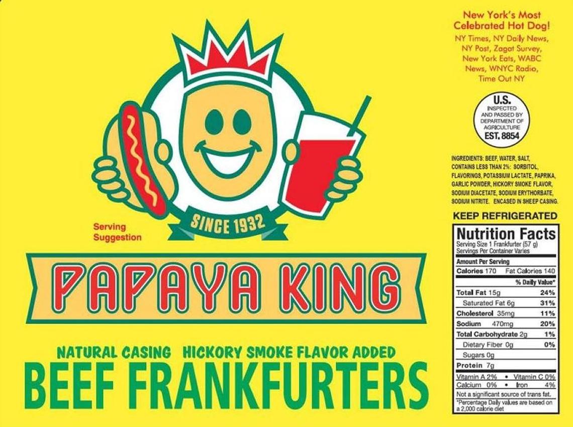 ▪ Various weights and sizes of Papaya King Beef Frankfurters, UPC code 1420 or 1421.