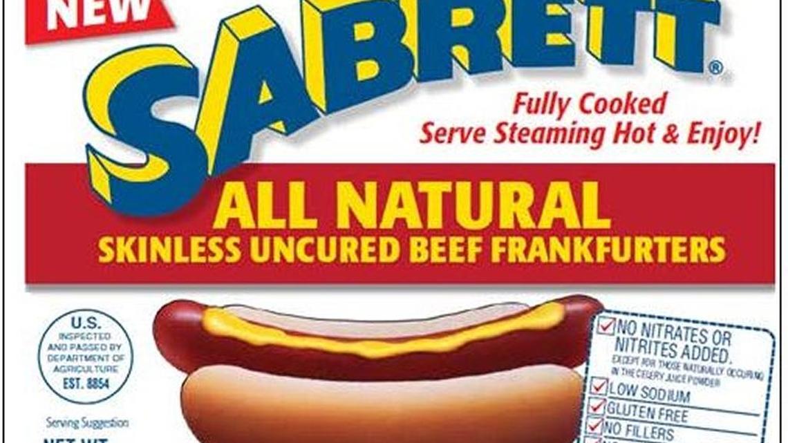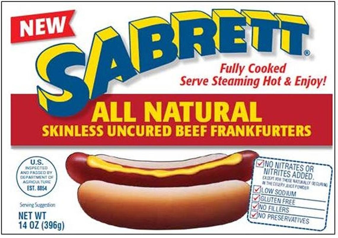 ▪ 14-ounce, 3-pound or 40-ounce packs of Sabrett All Natural Skinless Uncured Beef Frankfurters, UPC code 437, 438 or 439.
