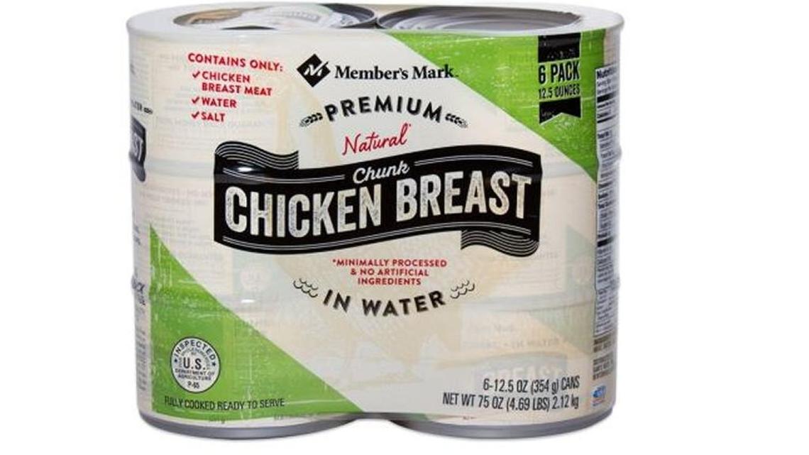 The recall covers lot No. 17333 of 12.5-ounce cans of Member’s Mark Premium Natural Chunk Chicken Breast in Water with a use by date of Nov. 29, 2020; and lot No. 17332 of 50-ounce cans of Member’s Mark Food Service Premium Natural Chunk Chicken Breast in Water with a use by date of Nov. 28, 2019. The cans went to retail stores nationwide.