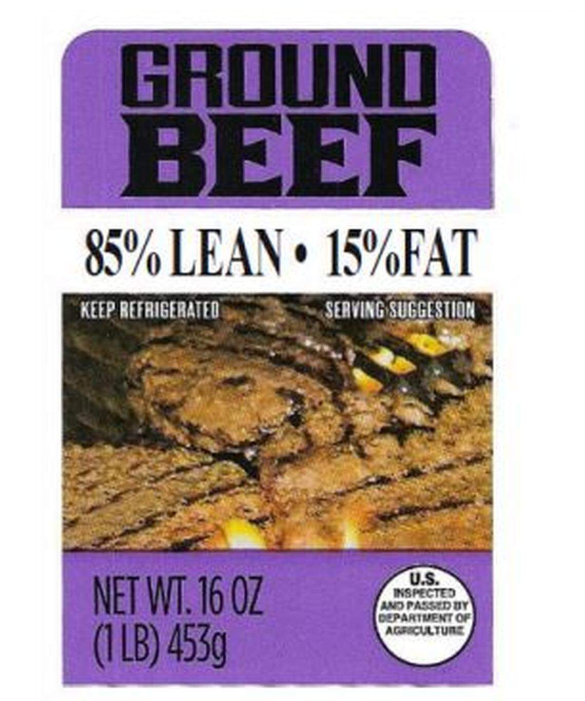 ▪ Kroger's store brand, 3-pound packs of 73 percent lean ground beef or 80 percent lean ground beef and 1-pound packs of 80 percent lean; 85 percent lean; 90 percent lean; or 93 percent lean.