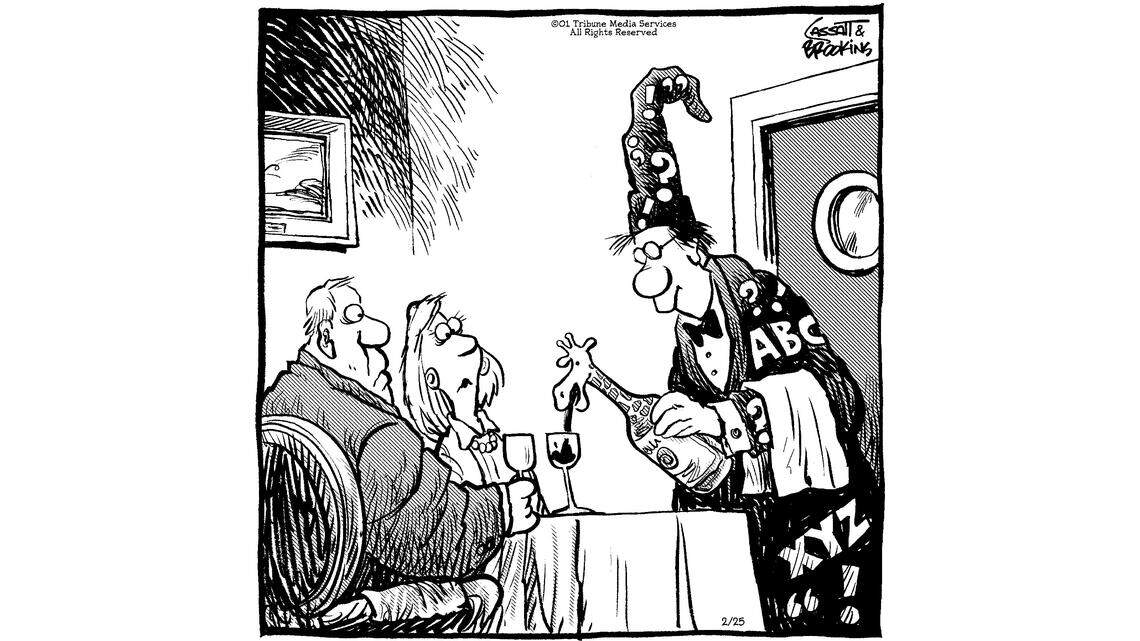 * Kathryn Chmurny sent in a restaurant coupon from the North County (Calif.) Times for a $17.95 dinner for two that includes ``1/2 giraffe'' of wine.