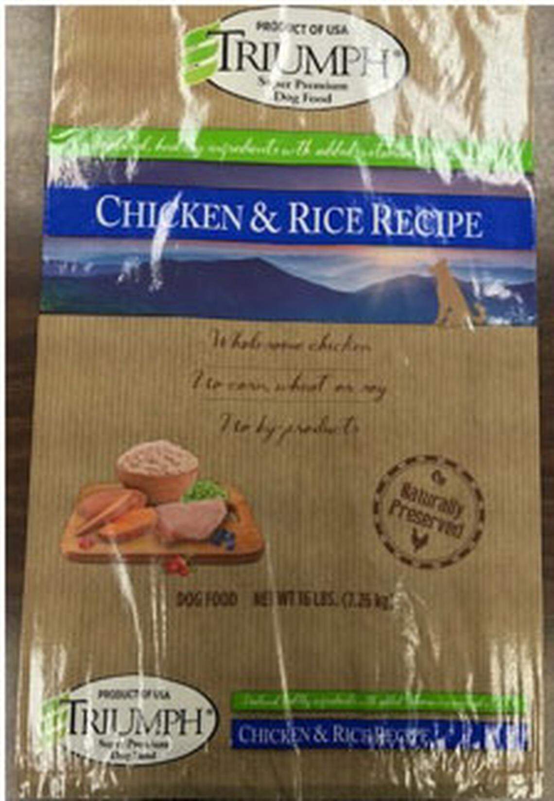 ▪ Sunshine Mills yanked three of its brands first, Evolve Chicken & Rice Puppy Dry Dog Food, 14-pound and 28-pound bags; Sportsman’s Pride Large Breed Puppy Dry Dog Food, 40-pound bags, UPC codes 0-70155-10566-0 and 0-70155-10564-0; and Triumph Chicken & Rice Recipe Dry Dog Food in 3.5-pound, 16-pound and 30-pound bags.