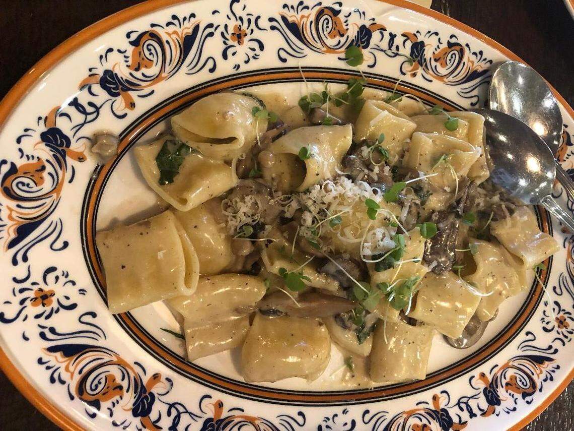 También hay especialidades que pocos restaurantes italianos sirven, como la paccheri, una pasta suavecita en forma de tubitos, que Bossi cocina con hongos y queso mascarpone. Toda una delicia.