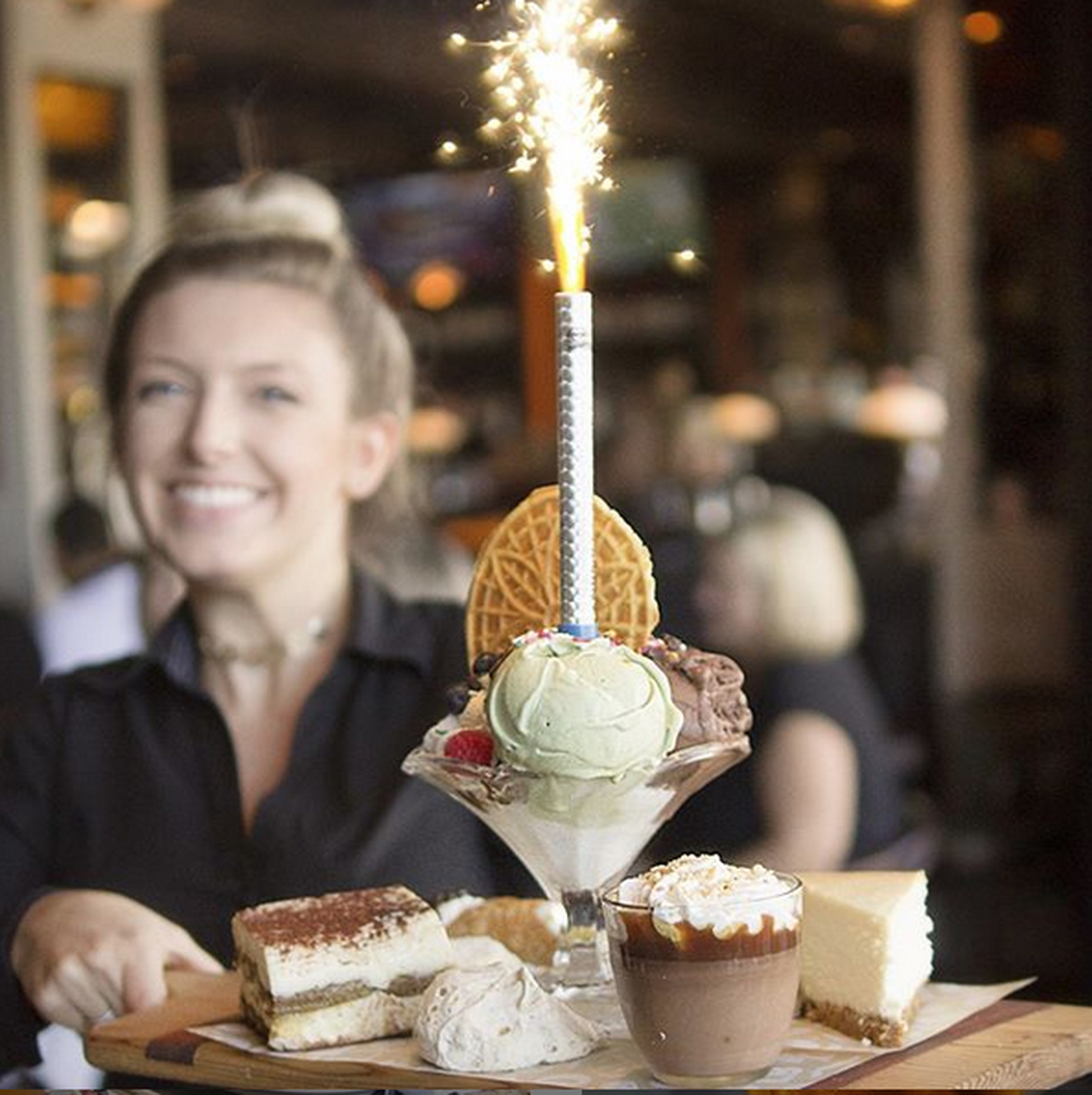 Si vas en grupo ordena el “Grande Dolci”, una bandeja con todos los postres de la casa: desde gelato con amareto hasta tiramisú y un despliegue de galletitas italianas. Lo rematan con una estrellita de bengala, para asegurarse de que, en serio, te vayas con la certeza de que la pasaste muy bien.