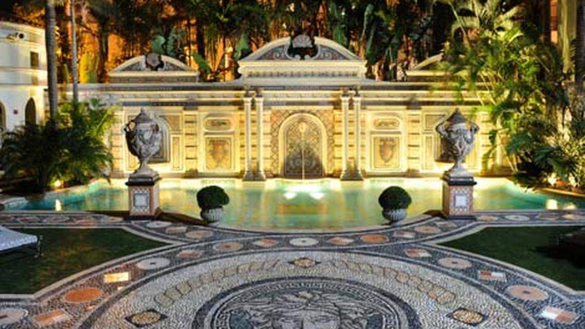 The digs beyond the gate certainly are lavish. Perhaps the most impressive sight is the Mosaic Garden courtyard with an enormous pebbled medusa inlaid in the deck leading to the 54’ Thousand Mosaic swimming pool lined in 24 karat gold and designed by Versace, himself.