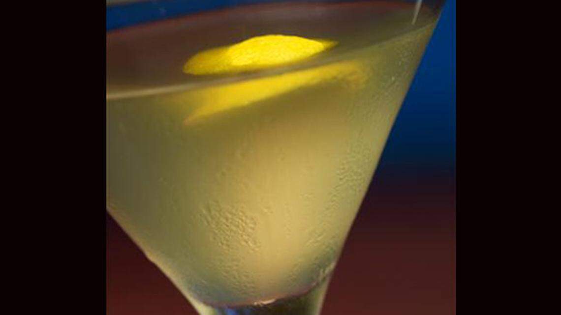 Strain into a martini glass and garnish with a lemon peel.