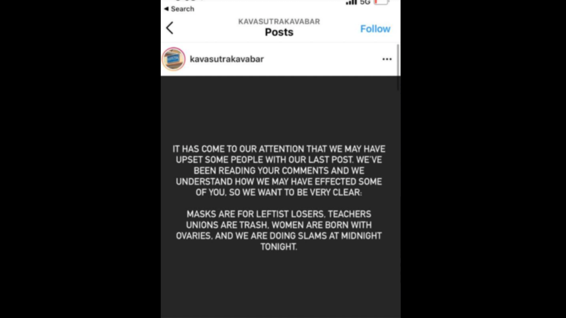 Earlier this week, Kavasutra Kava Bar, which has several locations across the country including South Florida, posted some inflammatory things on its official Instagram page.