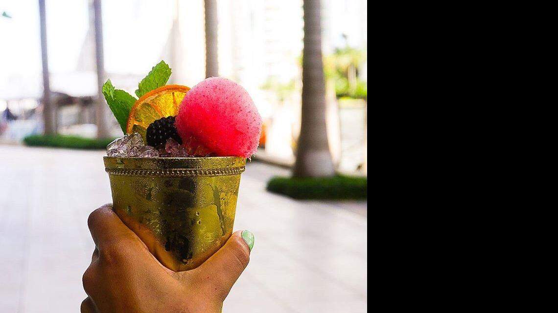 Sharp, sweet and citrusy, Zuma’s The Golden Lush combines Michter’s Rye, lemon juice, orange yuzu cordial, blackberries, and mint, and comes served in a gold julep cup with a puff of cotton candy for garnish.