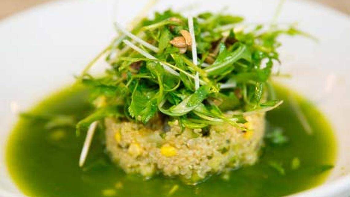 7. Basil Park: “Basil Park is more than your average juice bar. Its food flexes muscles like the ones on the tattooed, ballcapped cooks in the open kitchen. The menu, like Miami, is bustling and a bit all over the place, with flavor influences from the Mediterranean, Asia and Latin America. … Gorgeous salads are reason enough to come here. One, with butter lettuce and slivers of fresh-peeled grapefruit and hunks of ripe avocado, is dressed so well it shimmers. Bright bits of pomegranate seeds, basil and lemon offer pops of color and flavor. That and a protein-packed salad of red quinoa, sunflower seeds and sweet dried cherries have crunch and cool for days.” Reviewed in July; 3 stars. VPE.