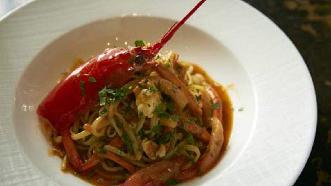 Our pasta Bolognese was disappointingly dry and mealy. Rubbery, overcooked lobster chunks were lost on dry land atop spaghetti noodles — no linguine available that night — that were, finally, al dente and edible.