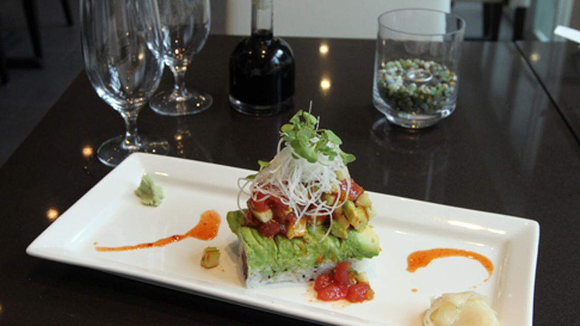 - Can’t-miss starter, artful Tuna Rock – a mix of tuna, avocado, masago (fish roe) and spicy mayo that’s molded into a disk, set atop brown rice (or seaweed salad) and served with cucumber slices, tempura flakes and scallions