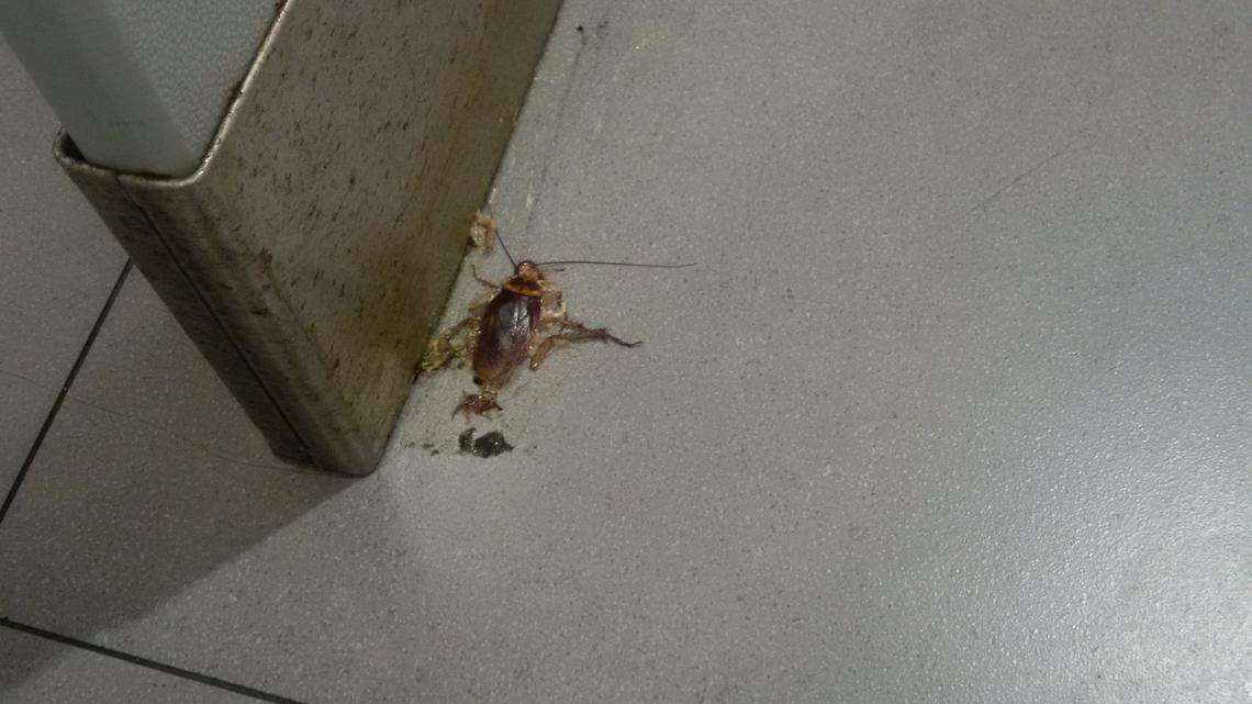 Next to that, “one roach crawling on the floor” next to a kitchen storage room reach-in freezer seems akin to dust. Not so much the “15 dead roaches in a sticky glue trap” under a kitchen prep table or the 18 dead roaches under a kitchen storage shelving unit.