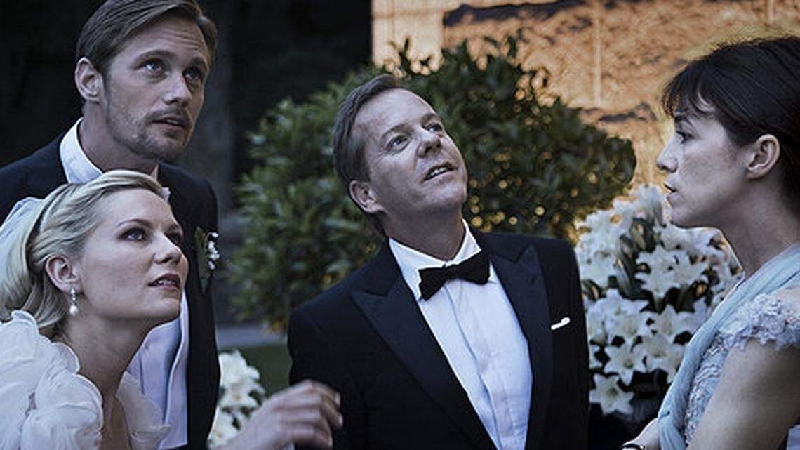 Justine’s husband Michael (True Blood’s Alexander Skarsgard) is doing his best to accommodate his new wife’s mood swings. Her sister Claire (Charlotte Gainsbourg) is also trying to be understanding, but she’s been in this situation before, and her patience is wearing thin. Claire’s husband John (Kiefer Sutherland), who footed the bill for the lavish reception at a posh country club, isn’t quite as understanding: He’s fuming mad.
