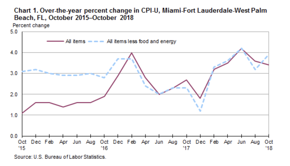 According to state Sen. Jose-Javier Rodriguez, the change will be insufficient to cover the rise in the cost of living many Floridians experienced in 2018, especially South Florida residents. Data from the Bureau of Labor Statistics show the average year-over-year increase in cost of living in the Miami-Fort Lauderdale-West Palm Beach metro area was well above 3 percent for most months of 2018.