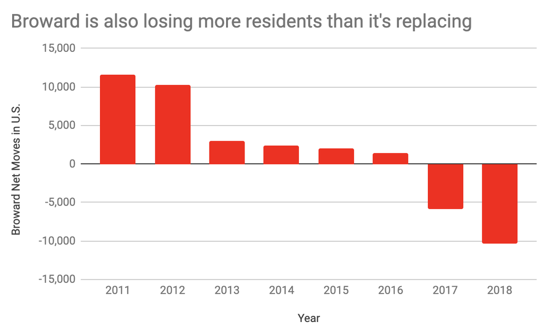 But for the past two years, Broward also has begun losing residents to other parts of the U.S. In 2018, it lost approximately 10,337 residents to other parts of the U.S., following a 5,858 loss in 2017.