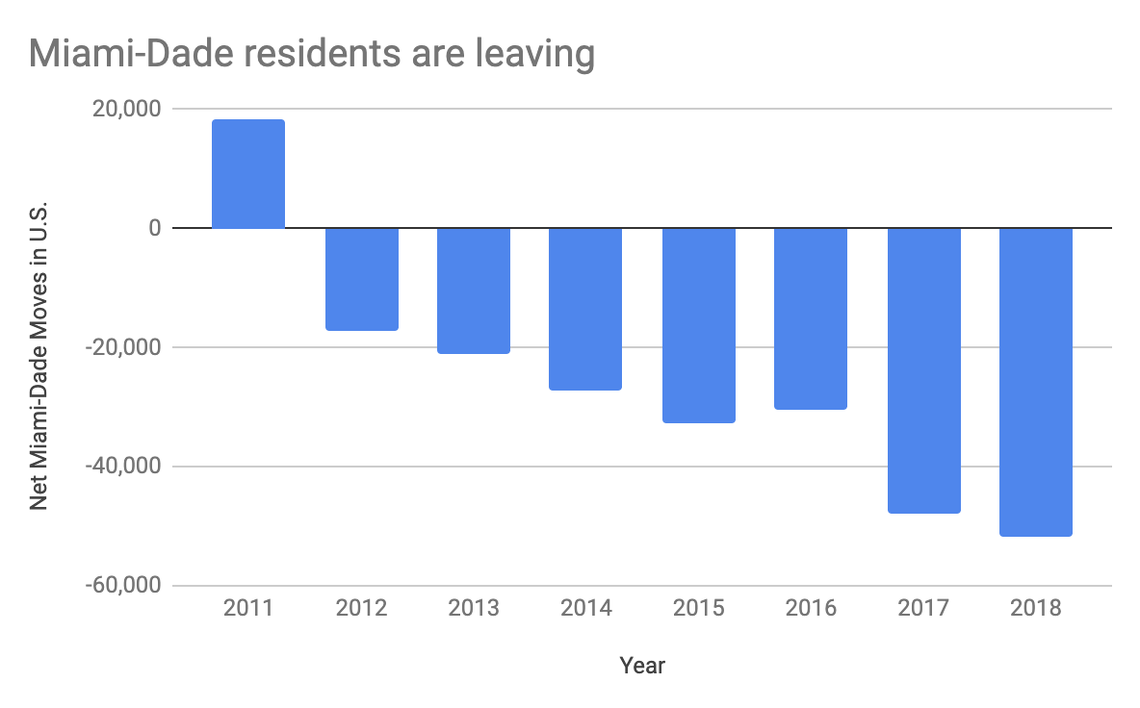 Until now, Miami-Dade and Broward have been able to rely on international migration to counterbalance the exodus. While the number of people moving here from outside the country is growing, the number leaving for other parts of the U.S. is growing even faster.