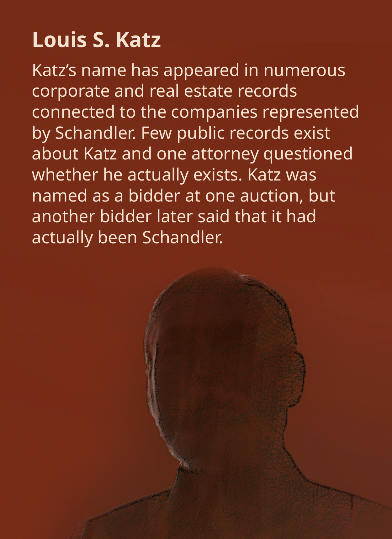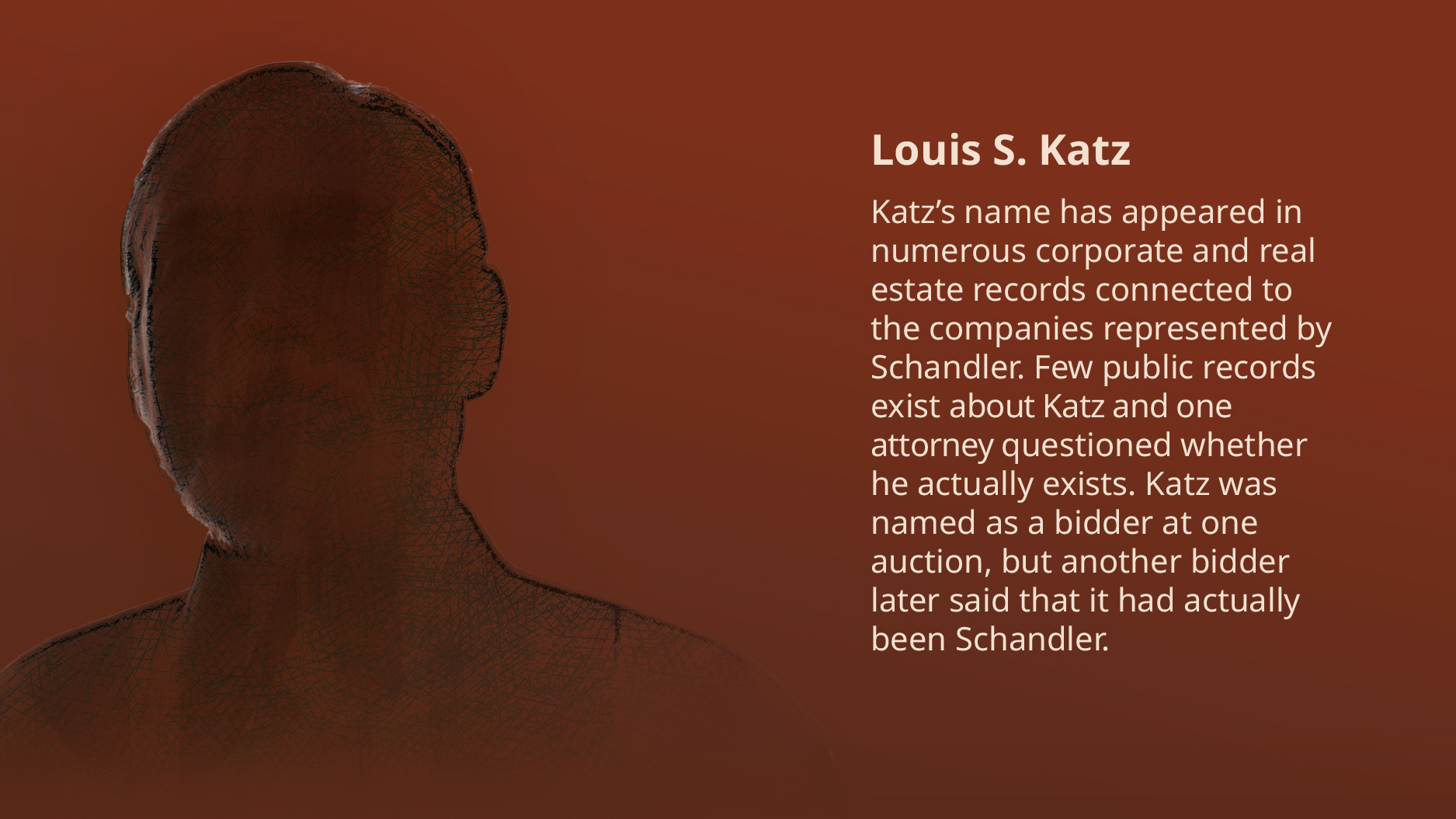 Ness was in for a further surprise when he received a transcript of the auction and learned that the man who said he was Katz and put in the winning bid at the auction was identified in the transcript as Brad Schandler.
