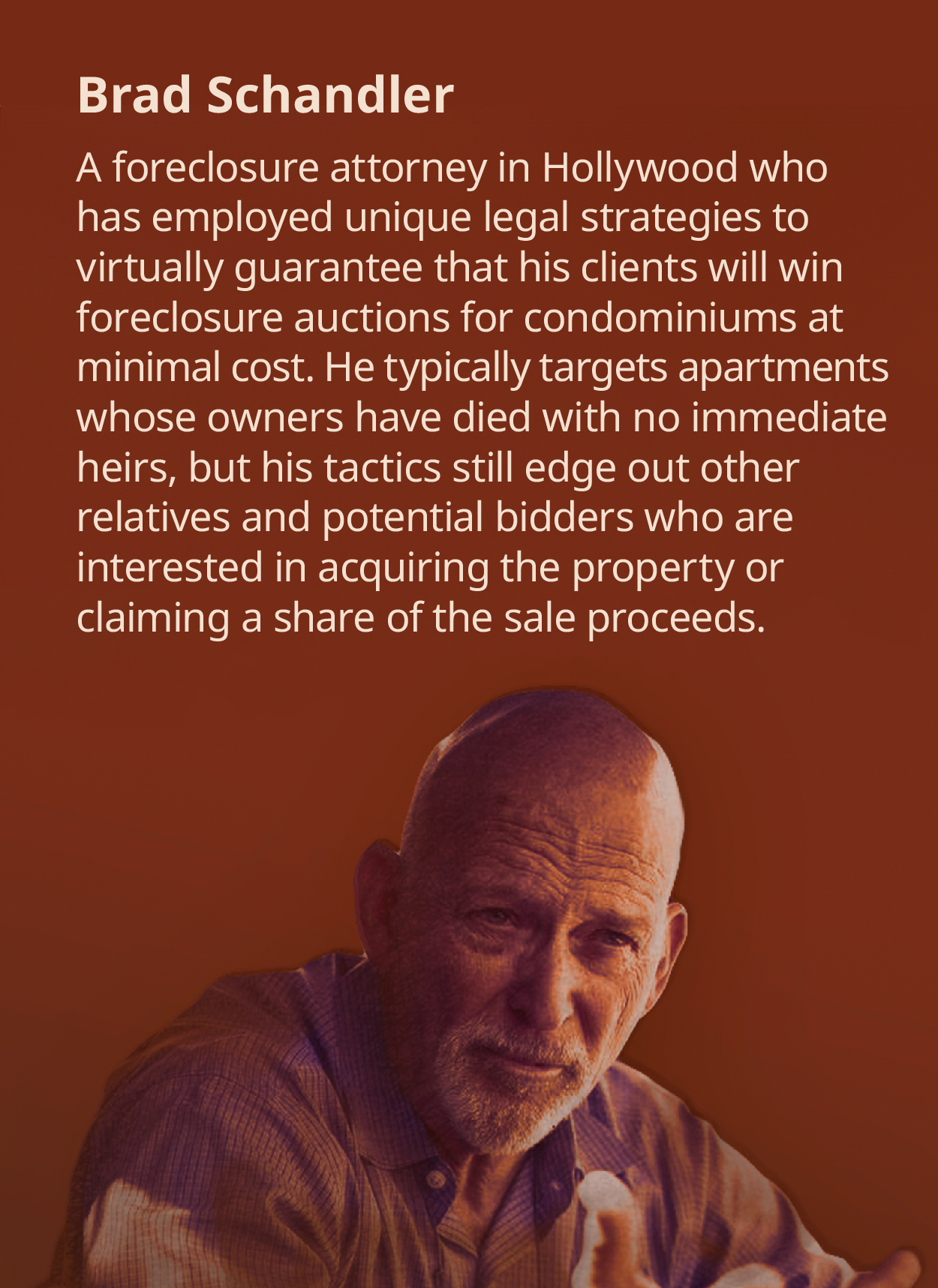 When Brad Schandler becomes involved in condo foreclosure cases, they quickly deviate from the norm. Scroll to learn more.