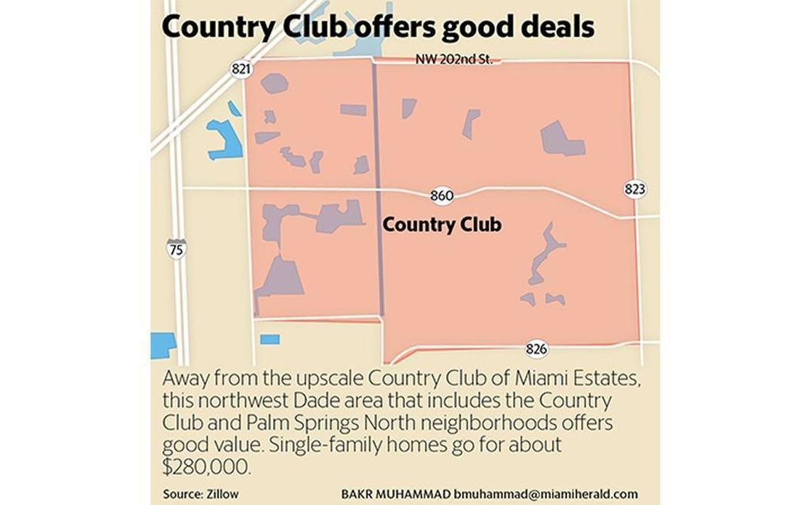Background: A leafy, amenity-laden area with restaurants, retail and the potential of the American Dream Miami mall on the horizon, Country Club offers good value to buyers. Many are being priced out of neighborhoods east of Interstate 95 and are turning to this section of unincorporated Miami-Dade for relief. Schools have good ratings from the Florida Department of Education and crime is low.
