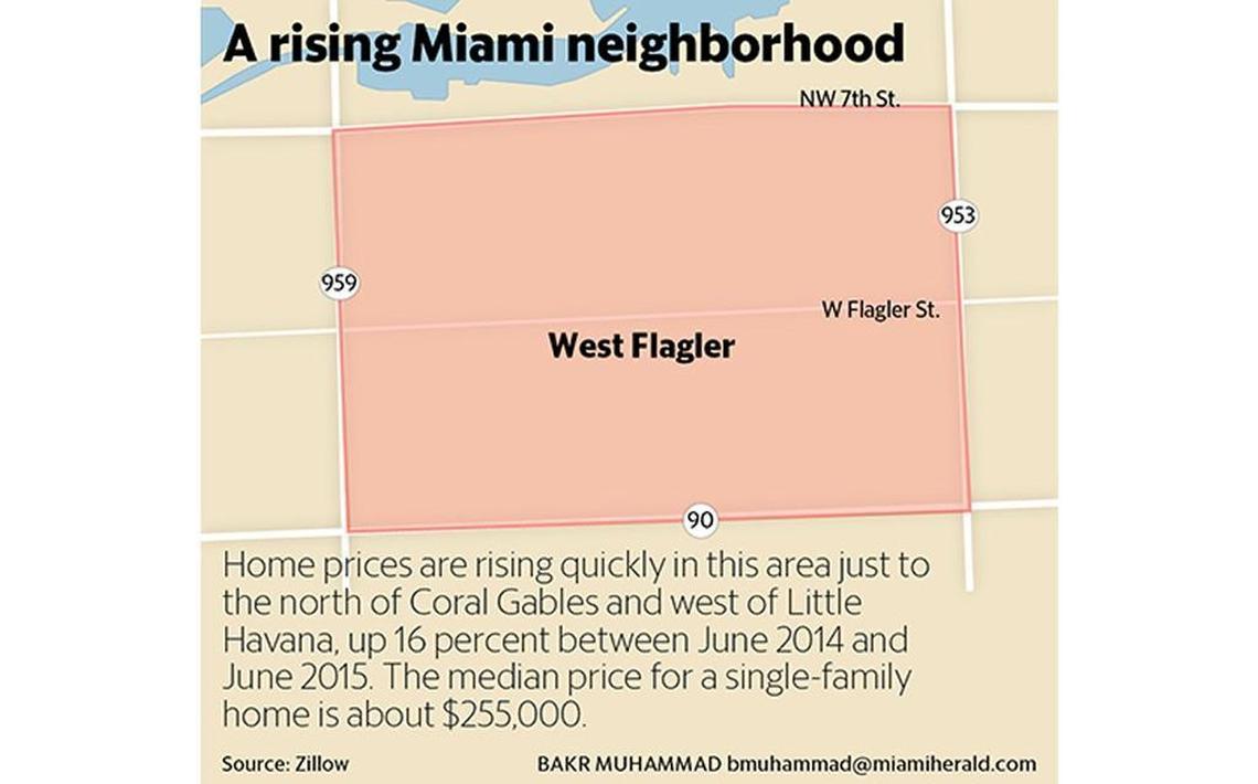 Most buyers in West Flagler are young, either singles or couples buying their first home or trading up to a home from a condo, Ulloa said. Homes tend to be small, mostly with two bedrooms and one bath; amenities often include original hardwood floors and yards with fruit trees.